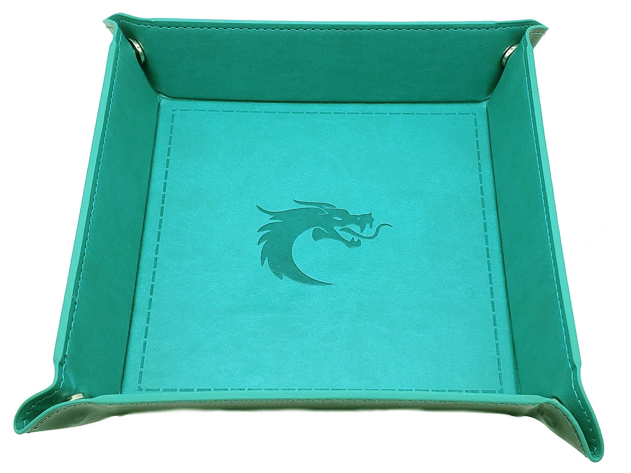 Match our gorgeous vegan leather wrapped dice boxes with this lovely vegan leather rolling tray. These babies are ready to capture your rolls from running off the table, while looking good in the process. The vegan leather is easy to clean and makes the engravings beautiful and crisp! Each tray measures 8.5” x 8.5” when lying flat and has a 5.25” x 5.25” rolling space when snapped together.