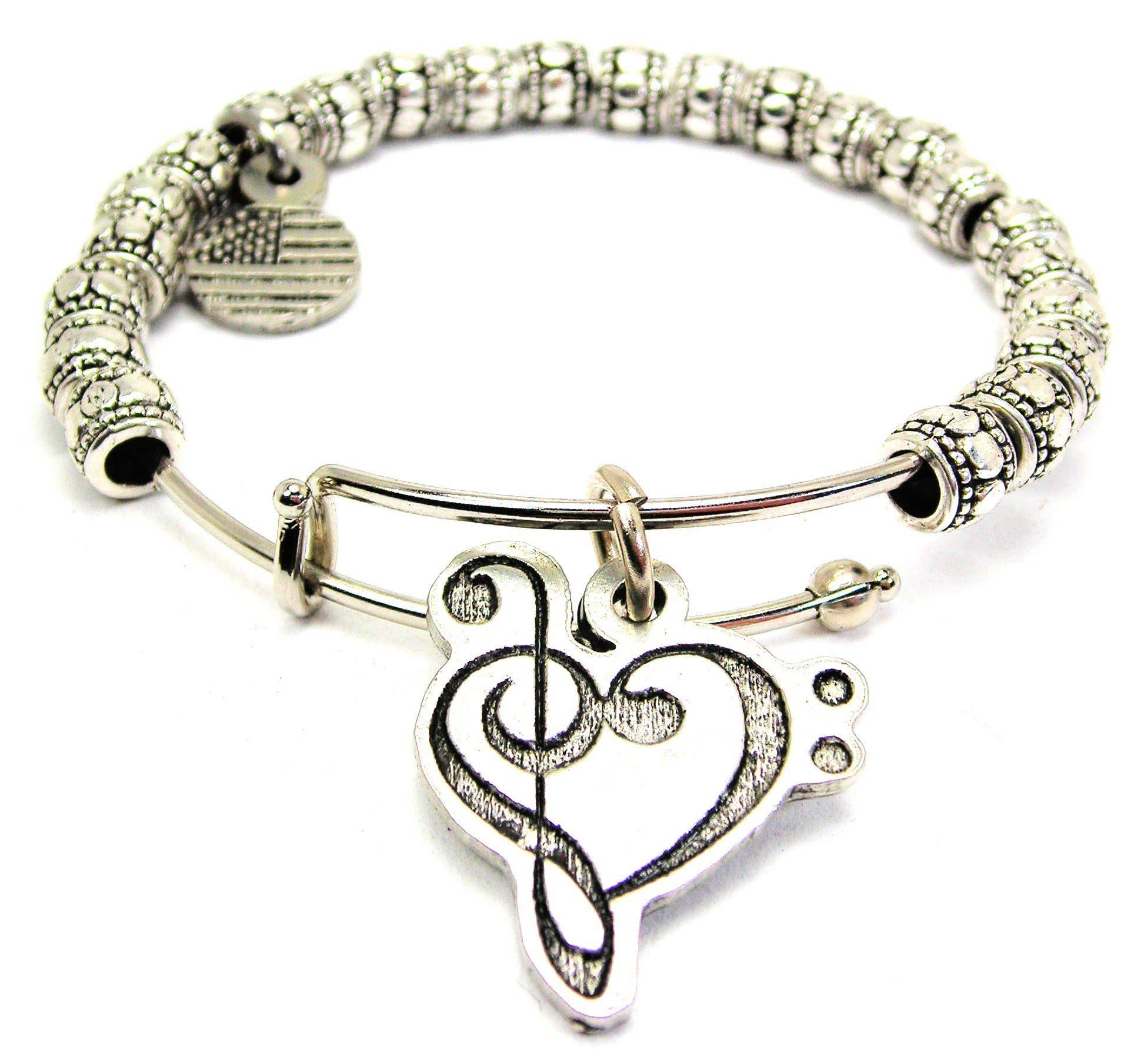 Immerse yourself in the rhythm of style with Dave The Bunny's Treble Clef and Music Note on White Snare Drum Fancy Charm B. This charm/dangle bracelet exudes an artistic flair, echoing the symphony of your unique personality. Designed for those with sensitive skin, it features a durable stainless steel chain. It's not just a bracelet, but a harmonious blend of fashion and passion. Experience the melody of elegance with Dave The Bunny, your family-owned brand from Vancouver, BC, Canada.