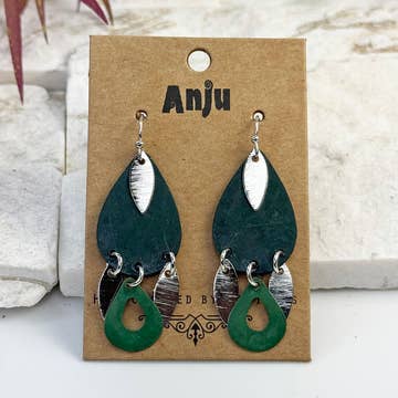 These earrings offer a unique horizontal oval shape that is bright and eye-catching. The hand-hammered piece of black steel gives it an extra edge while still being a very elegant and modern piece of jewelry. Measuring at 1.75" long these earrings are extraordinarily lightweight and made with hypoallergenic titanium ear wires so they are particularly comfortable to wear!