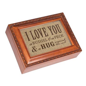 I Love You A Bushel And A Peck & A Hug Around Your Neck Wood Box Sign. All our signs are build into a wooden box frame with a rustic touch. Signs are hung directly off the frame.