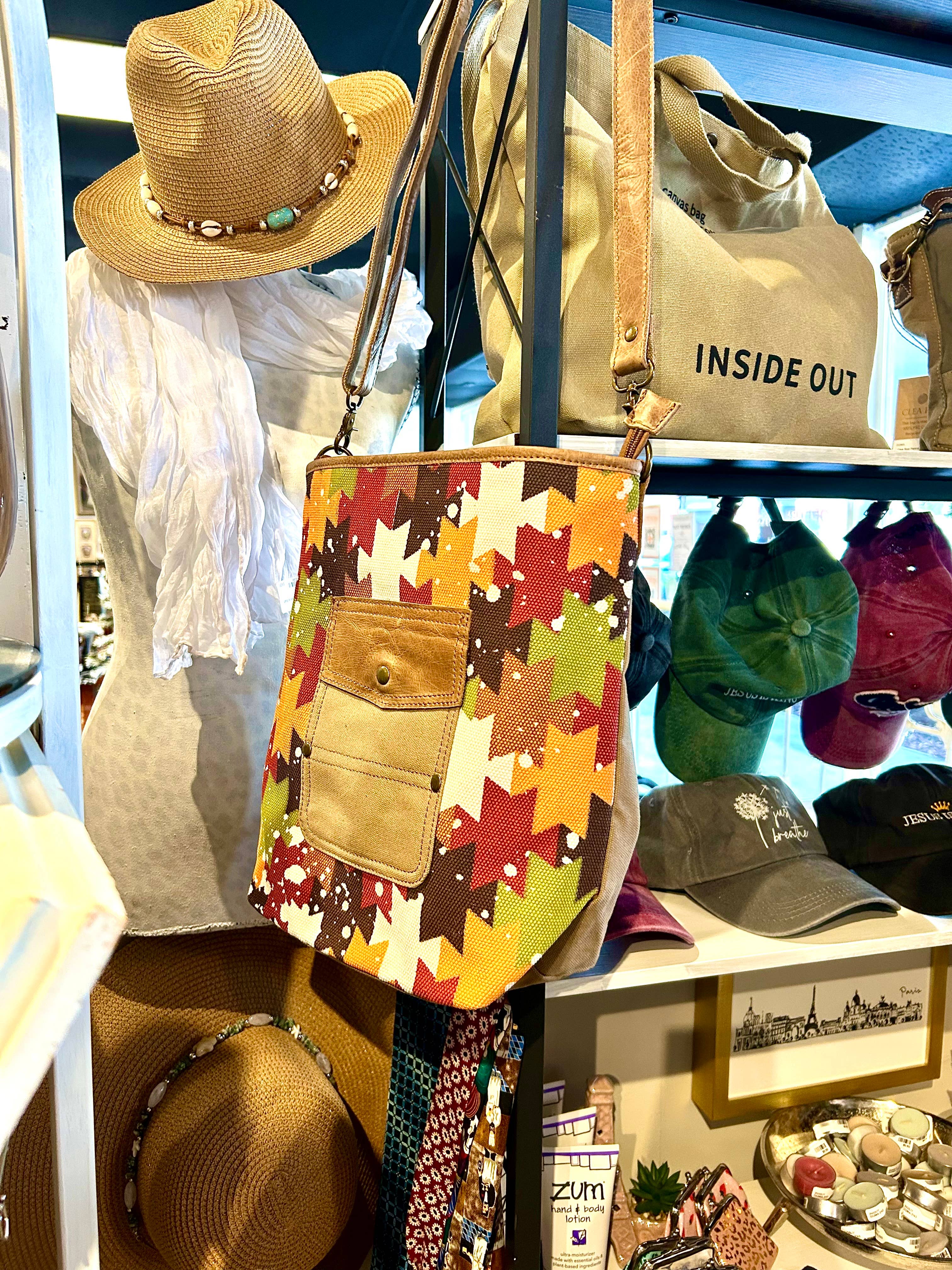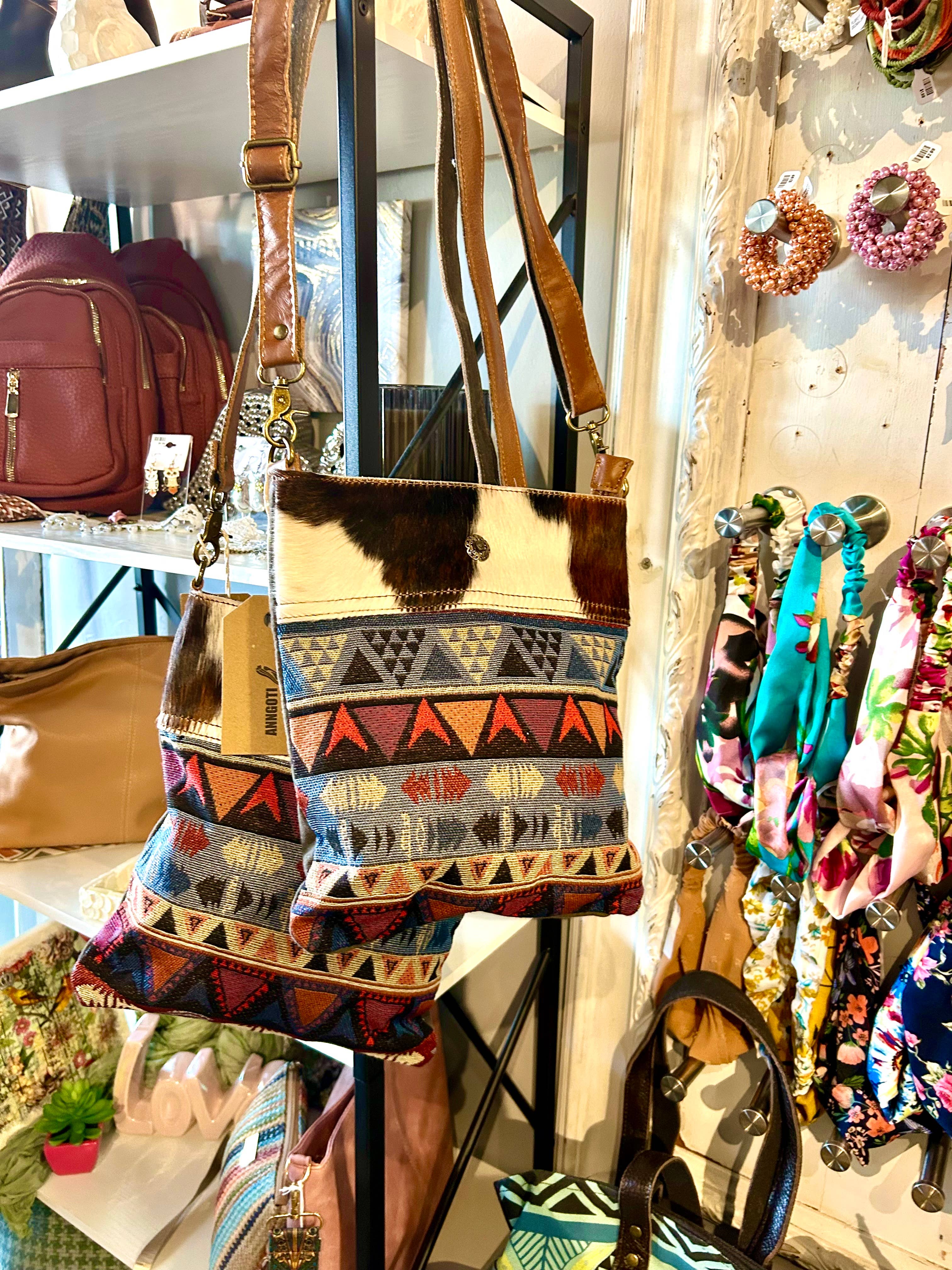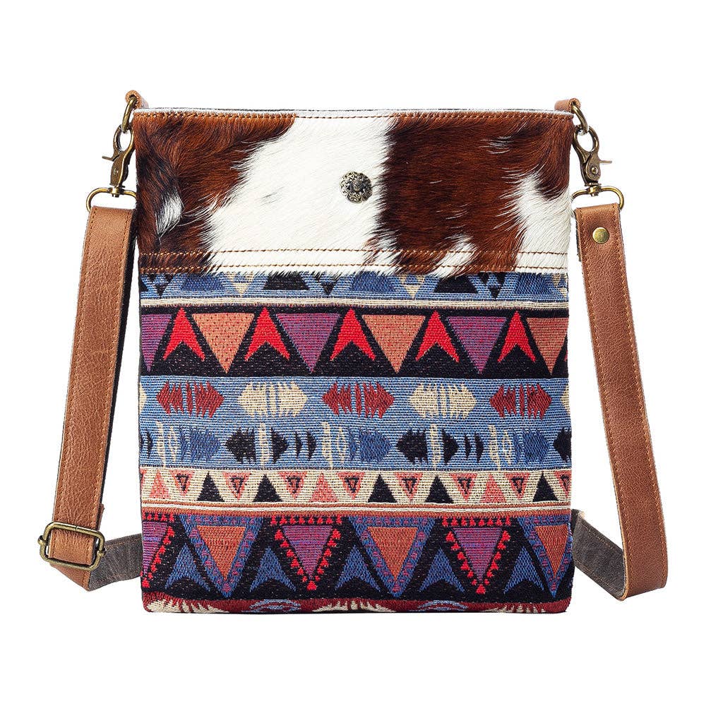 DESCRIPTION: Crafted from premium genuine leather and durable vintage canvas, this classic shoulder bag features a hand-printed motif and engraved floral accents. Multiple zippered pockets offer both function and timeless charm. DETAILS: • 11.5(L)*7.25(H)*3(D) inch • Genuine leather / Tapestry Aztec fabric / Cotton canvas • Zipper Closure • Antique silver stud • 1 Interior zip pocket • 2 Interior slip pockets • Cowhide upper is natural and will wear under normal conditions. • Each bag will vary slightly as each pelt will have a unique pattern. • No two bags will be exactly the same and may vary from the photographs. • Giftable, fun, fresh, playful, impulse buy, handmade, eco-friendly CARE: • Avoid using sharp objects or placing oversized items to prevent damage to the product; • Wipe the surface with a damp cloth and clean the interior; • Hang to dry; • Never use bleach or chlorine-containing abrasive cleaners.