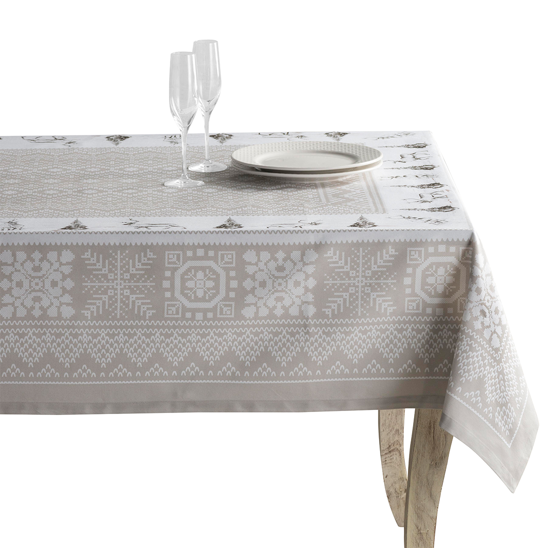 Hand block printed tablecloth made from 100% unbleached kora cotton, crafted by Fair Trade artisans in Southern India. Each tablecloth features contemporary motifs created using traditional wooden blocks, with dozens of careful impressions required to complete the design. Low-impact dyes ensure a subtle, lasting finish while preserving the environment. Perfect for everyday dining, festive gatherings, or special occasions, this tablecloth adds a warm, handcrafted touch to your table. Durable and easy to care for, it is a sustainable alternative to mass-produced fabrics. Packaged with a belly band, it makes a thoughtful gift for Birthdays, Housewarmings, Mother’s Day, Thanksgiving, or Christmas. Co-ordinated napkins are available separately. Material & Care: 100% kora (unprocessed & unbleached) cotton Hand block printed Low-impact dyes Machine wash cold, delicate cycle; tumble dry low Origin: Handmade in India Fair Trade Product – Artisan-made and eco-friendly Sizes Available: 60"x60", 90"x60" Due to the handmade process and variations in screens, slight differences in color or weave may occur — a hallmark of authentic artisan craftsmanship.