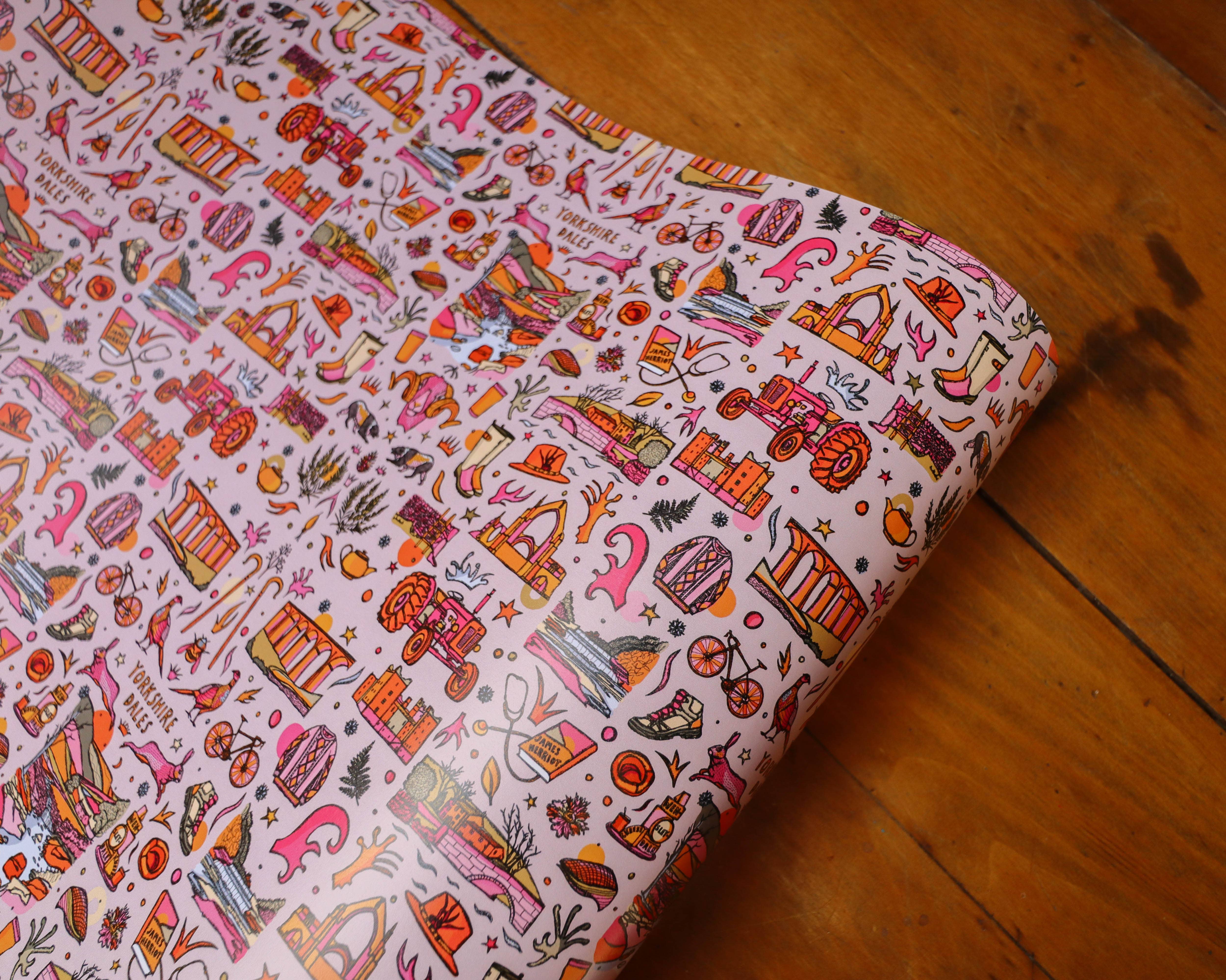 This elegant wrapping paper features my original pattern for winter with badgers, foxes, robins, mistletoe, holly, berries, ivy, evergreens, and a cosy cottage. Illustrated in beige, orange, pink, green, brown, and yellow. Printed onto 115gsm silk sheets, for a premium but recyclable finish. Thick enough to prevent tearing and transparency, whilst still being foldable. Supplied rolled in tissue paper and a cardboard tube so you can store and display however you prefer- perfect for hanging displays.