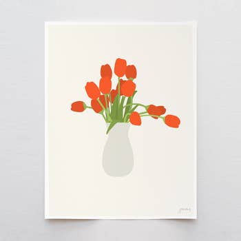 Ever Pollen Print Shop - Wholesale Art Print - ORANGE MODERN BOLD FLORAL HAND PRINTED BLOCK PRINT 11x14" (C