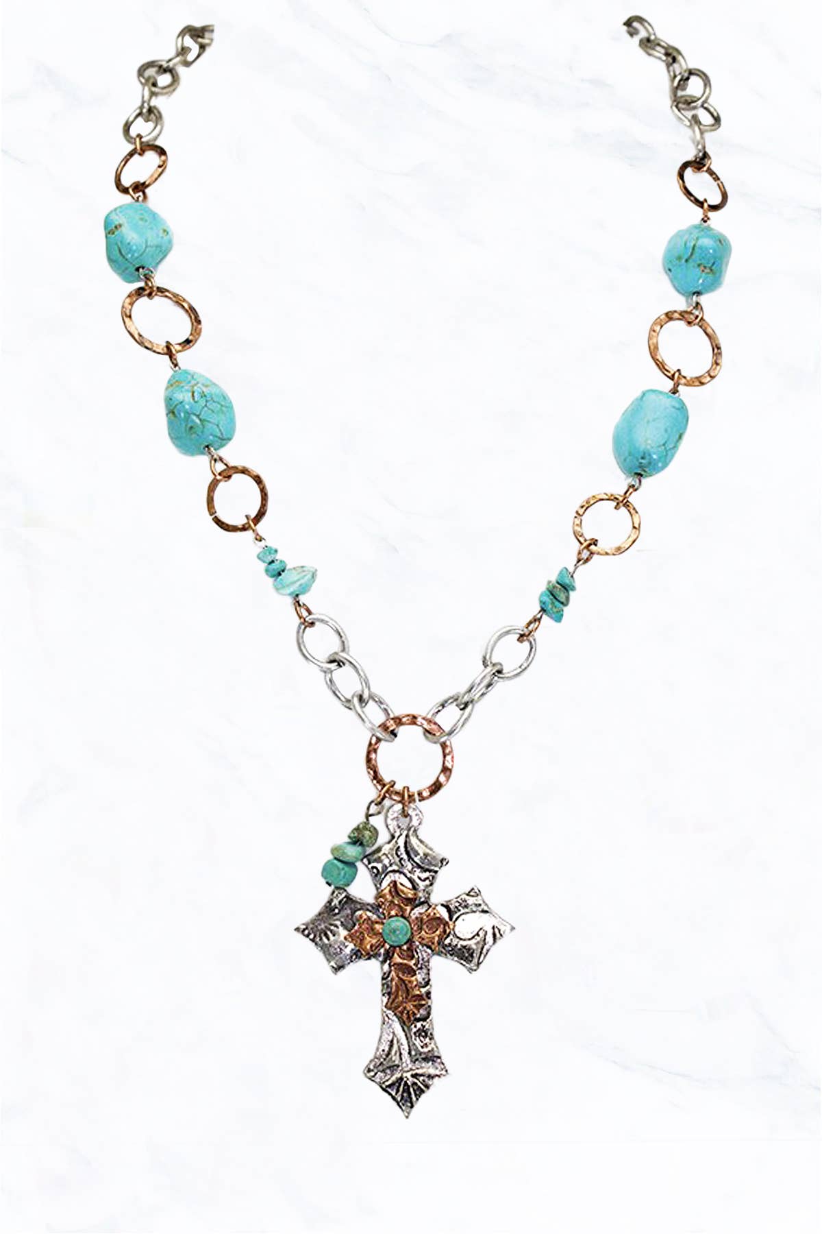 Pearl and Copper Beaded Collar Necklace with Copper Cross 114G