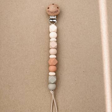 Chewable Charm pacifier clips are simple and the perfect accessory. Tie any type of pacifier or teether/ toy through the loop and stop playing the pick up off the floor game every 2 minutes! They are lovely + practical and can double as teethers, but always require adult supervision. All Products come in packaging with materials, cleaning and safety details. Materials: - Food Grade Silicone beads - Stainless Steel Clip - Beechwood