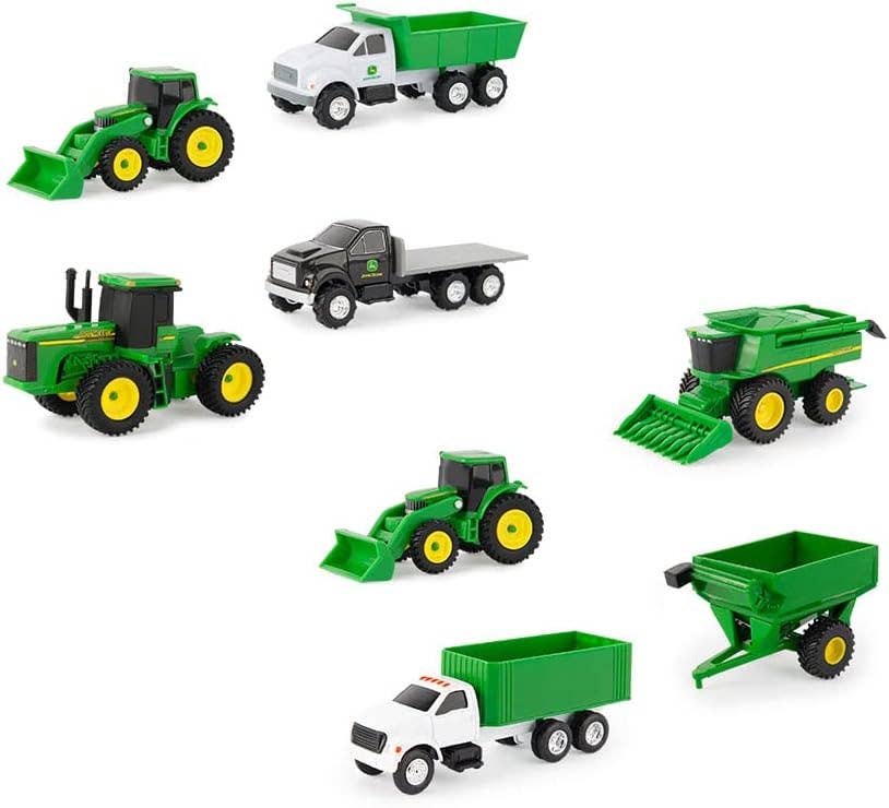 A classic duo perfect for farmyard adventures! Crafted by Tomy, this set features a sturdy 8-inch tractor and matching wagon, both in iconic John Deere green and yellow. Designed for durability and authentic detailing, it's ideal for both indoor and outdoor play. Spark imaginative play and explore farm life with this engaging and timeless toy set. 🚜 Steerable Tractor: Features a front axle that steers, a rear hitch, and a die-cast hood for realistic play. 🛳 Movable Wagon: Includes a front hitch and an opening tailgate for versatile hauling. 🏆 Trusted Brand: Produced by ERTL, a leader in farm toys for over 60 years. 📏 Perfect Size: Set measures 17.50" x 4.75" x 5.25", ideal for small hands and big imaginations. 🌟 Timeless Fun: The 8-inch John Deere tractor and wagon set offers endless farmyard fun and exploration. Perfect for retailers offering farm toys, collectible die-cast vehicles, and John Deere-themed playsets that combine durability with imaginative fun.