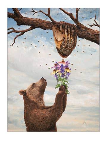 Give someone a bear hug. The Grizzly Bear is the largest predator in Yellowstone. She's feared, celebrated, and once fed at the dump. This card is our homage to this beautiful creature. • flat shaped card is letterpress printed in blue ink on 100# mustard yellow paper • measures approximately 3.5”x8” • die cut in our studio, cut to hold a gift card, money, tickets, or a love note • accompanied by a #10 envelope and packaged in a clear sleeve Go wild!
