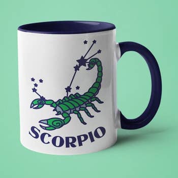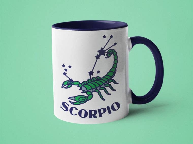 The Scorpio Zodiac Mug - featuring a sophisticated yet minimal Scorpio zodiac design on a beautiful mug. It's the perfect gift for your astrology-loving friends born from October 23 to November 21.