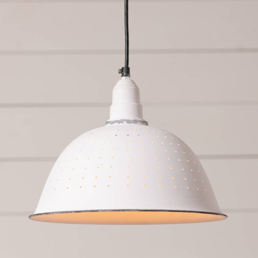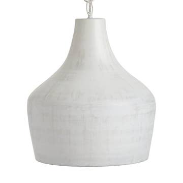 Illuminate your interior space with this ceramic pendant lamp with swag cord. This lamp is handmade from cast stoneware finished in an off-white glaze and hung by a pre-fit 15 foot braided swag cord. The lamp has a perforated rim that allows for warm specks of light to compliment the main shade, and the earthy toned, braided cord sets of against the black fixtures and switch. This minimal accent piece is designed to compliment most surroundings and can be placed on its own in your favorite spot or in multiples to create an interesting array of hanging pendant lights. This piece is designed to hang from the cord from hooks in the wall or ceiling and comes with hanging hardware and cord strain relief clips. UL rated cord is preassembled and the lamp comes ready to hang. Ceramic lamp shade measures 8inches high and 5inches wide. Accommodates an E26 or A19 standard light bulb base. Low wattage bulbs or LED bulbs are required for their low heat emission and are sold separately.