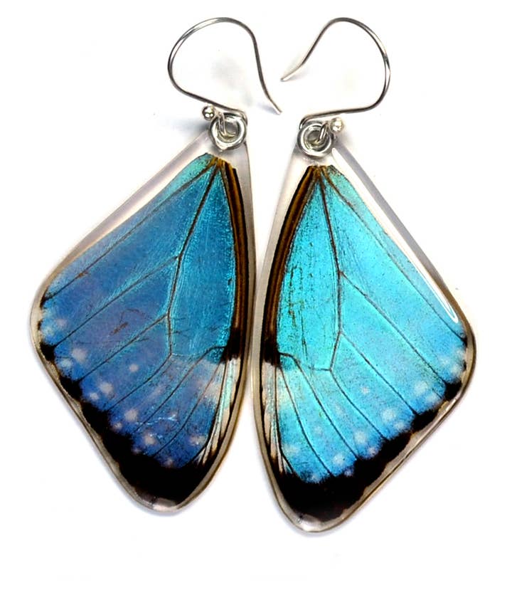 Real butterfly wing pendant, encased in resin using a proprietary process, on a sterling silver bail.