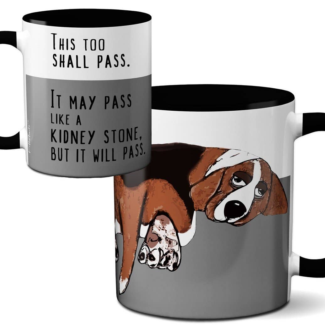 This 11-ounce ceramic mug is dishwasher and microwave safe. The image does not peel or fade. The design was hand-drawn and digitally printed using permanent dye-sublimation printing in our Oregon studio. Mugs are shipped in recyclable corrugated wraps. Mugs are most economically shipped in mixed cases of 36. Pithitude. Laughter you can hold in your hand.