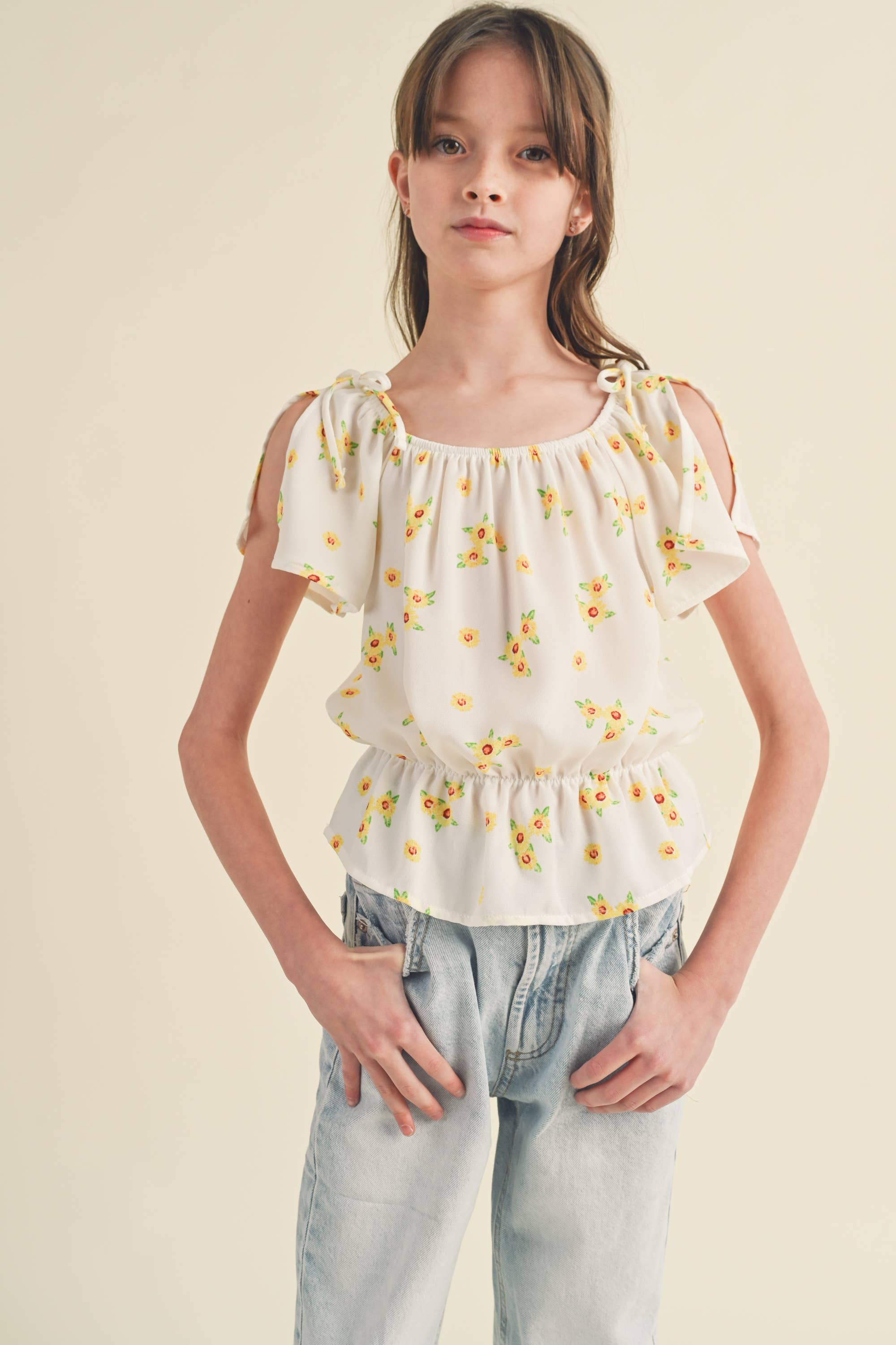 TWEEN KIDS GIRLS PUFF SLV EMB PEPLUM TOP KT2648 (7-14)