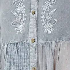 Stonewashed Rayon Fabric: Lightweight, breathable, and soft to the touch with a vintage-inspired finish. Relaxed Fit with Shirt Collar: A timeless design that adds structure to the flowing shape. Long Bat Sleeves: Create a dramatic, stylish drape while maintaining ease of movement. Artisanal Patchwork Detailing: Unique patterns combine to add texture and personality. Intricate Multi-Color Embroidery: Enhances the top’s elegance with handcrafted flair. Frill Accents: Add a subtle feminine touch and visual interest. Versatile Style: Ideal for casual outings, laid-back dinners, or evening get-togethers. Please Note: Due to the handcrafted nature of patchwork, each piece is uniquely one-of-a-kind in design and color placement.