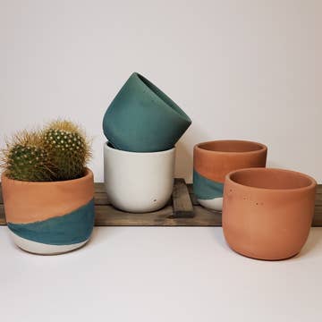 Amalfi Ceramic Planter Pots, Turquoise and White Color