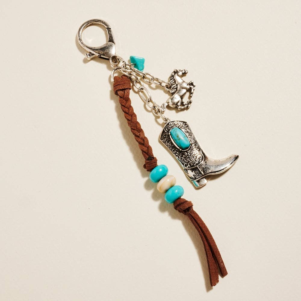 Faux Embossed Leather Western Keychain with Charms