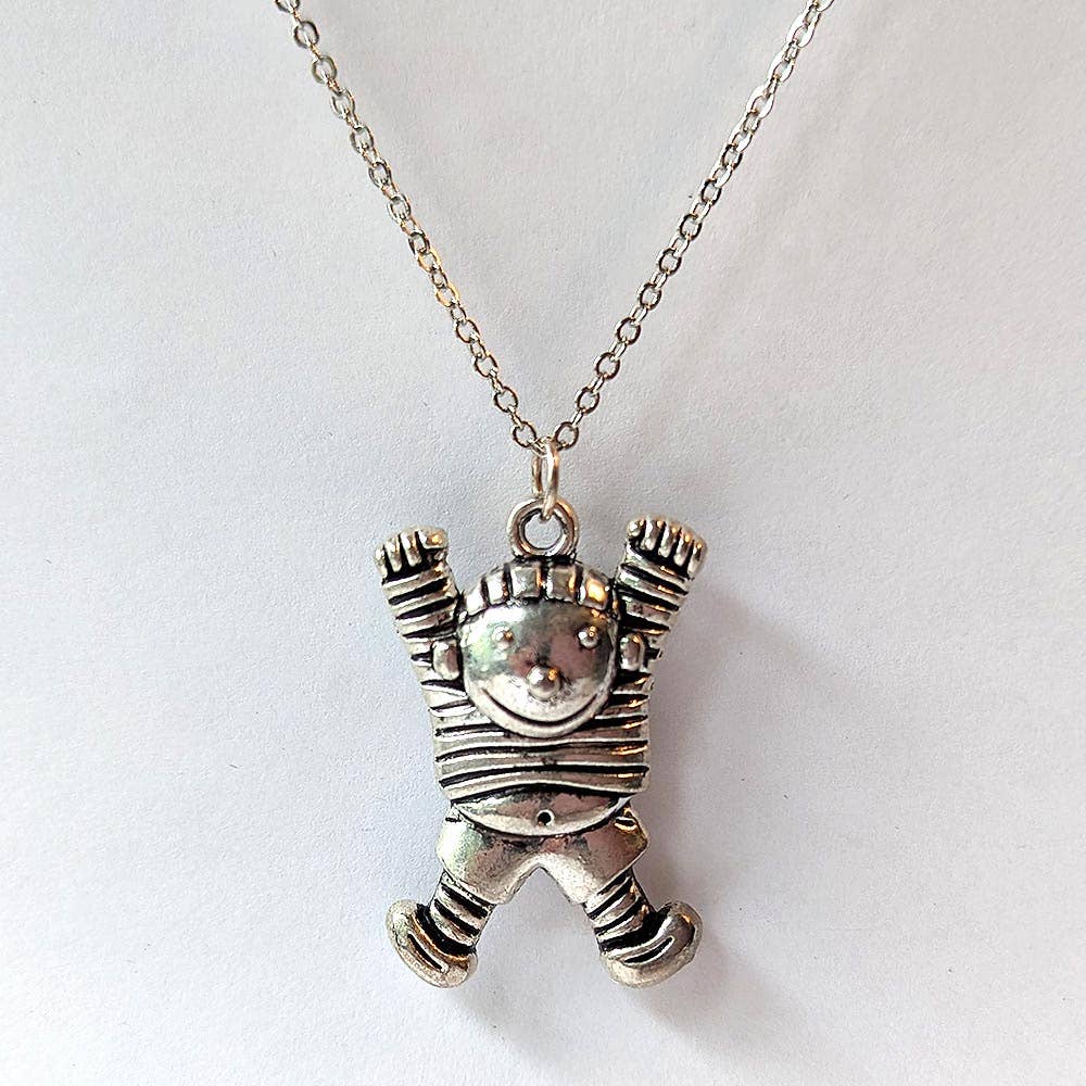Sterling robot pendant on 18" sterling silver ball chain. Approximately 1/4" x 3/4"