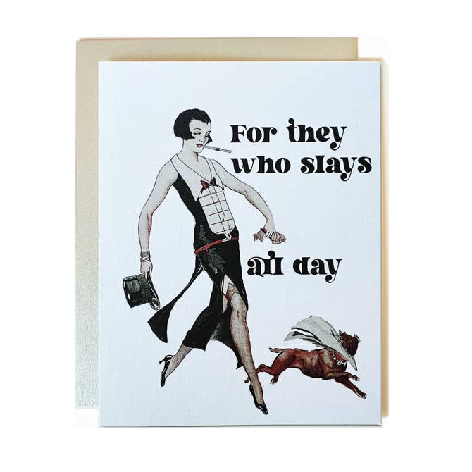These cards are so beautiful, and the women are beautiful! The deco vibe and 1920’s feel makes them stand out! Definitely original, our customers love them! It’s almost time for another order! Hit card for us was the “And the Princess saved her own damn self!” That card lasted only minutes! Brilliant!
