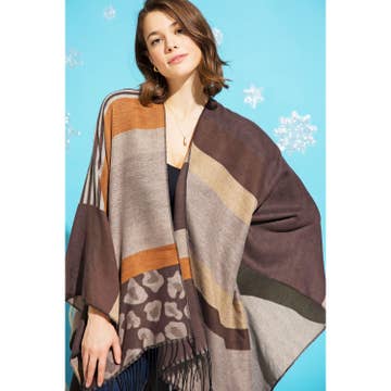 Zig Zag Pattern Faux Fur Poncho P4030 (12PC) 6 Color Assorted Black-3pc/blue-1pc/burgundy-2pc/camel-2pc/ivory-2pc/grey-2pc One Size ( Model height : 5'7 ) P4030