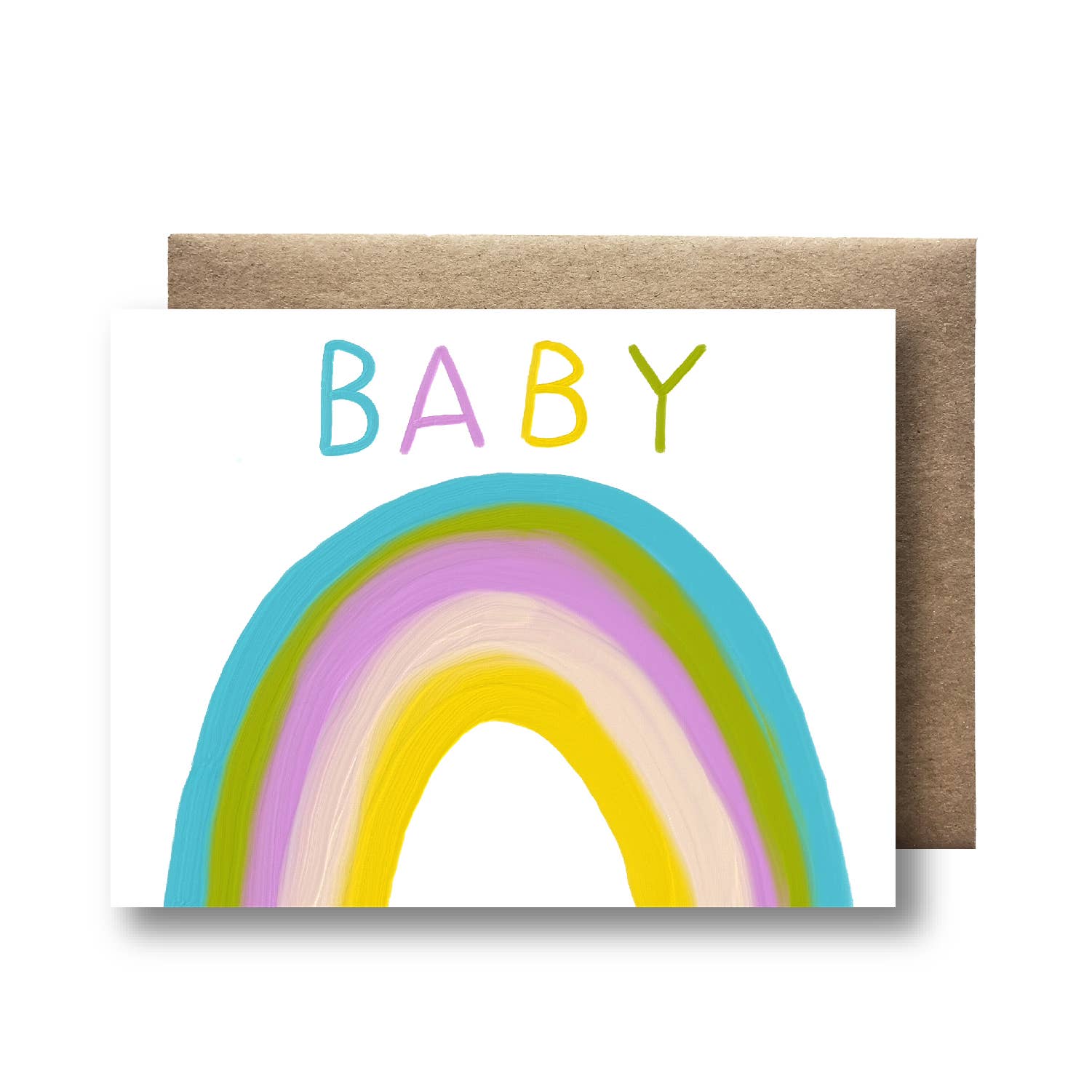 Baby Card, blank inside. A2 Size - 4.25 by 5.5 inches with foil embellishments. Comes with a coordinated envelope and packaged in a clear sleeve. Lovingly designed by Carolyn Suzuki in Los Angeles, California. Printed on carbon neutral FSC certified paper in the United Kingdom. Main image - rainbow, baby, smile
