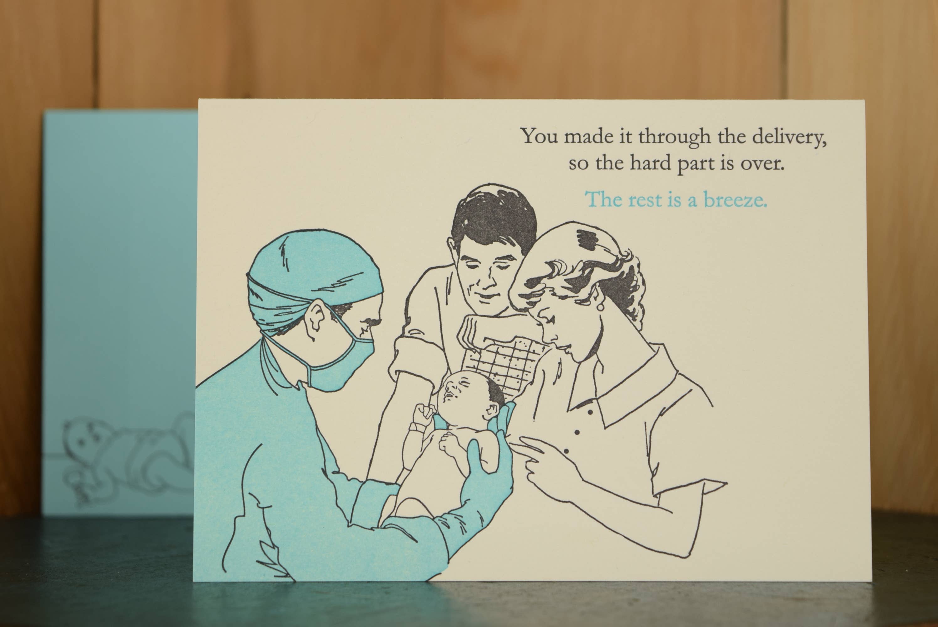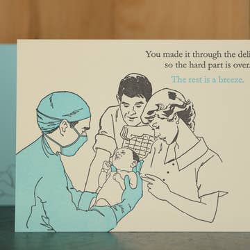 Discover the Baby Breeze Card from Oddball Press LLC, a perfect choice for a baby shower. Crafted with a unique letterpress finish, this card leaves the inside blank for your personalized message. Measuring at 4.875 x 3.50 inches, it's the ideal size to express your well-wishes. Oddball Press, renowned for quality design and humor since 2007, continues to please and delight with this contemporary greeting card. Based in Cleveland, Ohio, we bring joy through ink on paper.