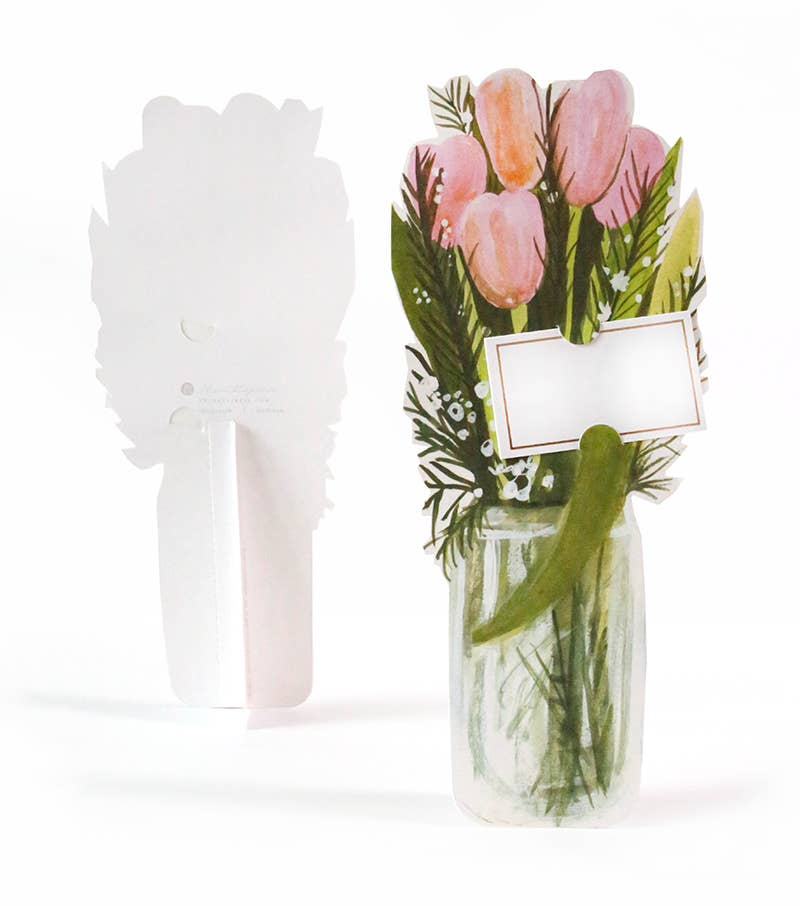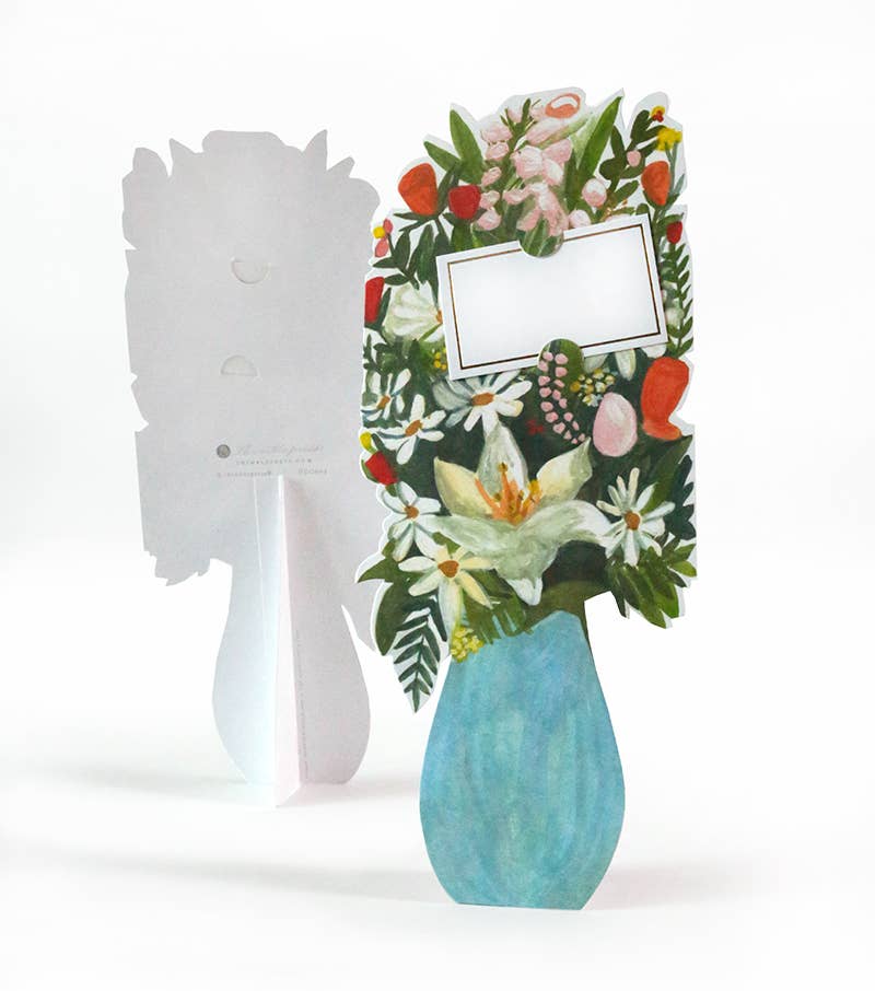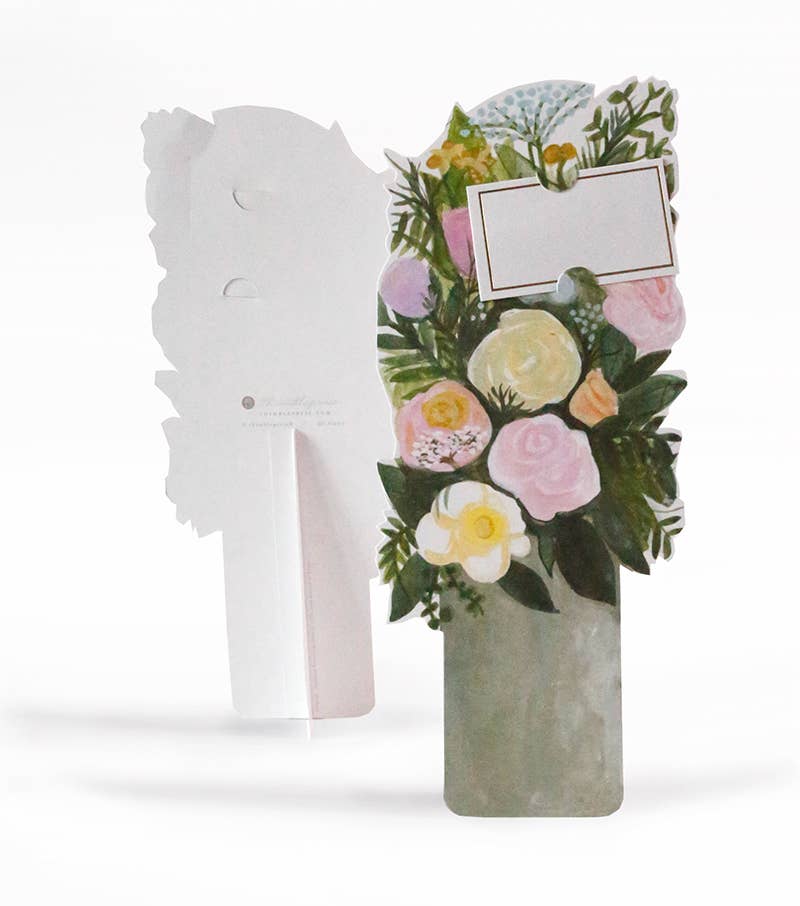 Introducing the Florever Collection by Thimblepress. Each hand-painted design has been created into a specialty, die-cut card that contains a pop-out stand in the back for easy tabletop display. A message can be written on the gold, foil-stamped enclosure card that slides right onto the bouquet of flowers. These cards can be used for any occasion or celebration. Enjoy the Florever bouquet *FOREVER*, as it is a floral arrangement that never needs watering!