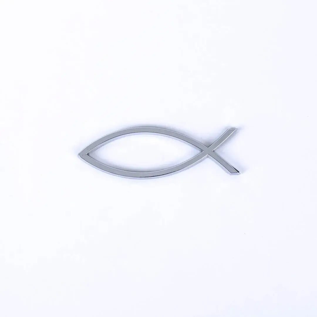 Auto Emblem Fish Cross Silver