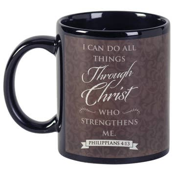 This handsome Man of God mug is one that he will enjoy using every day, with its inspiring Man of God prayer. Black ceramic mug holds about 11 ounces and is microwave/dishwasher safe. Text of prayer: Help me, Lord, to honor You in everything I say and do. Help me, Lord, to do Your will, give me wisdom, give me skill. Grant me the ability to guide those who depend on me. May I guide them with your love and with your grace from up above. Poem by Alda Maria ©Dicksons.