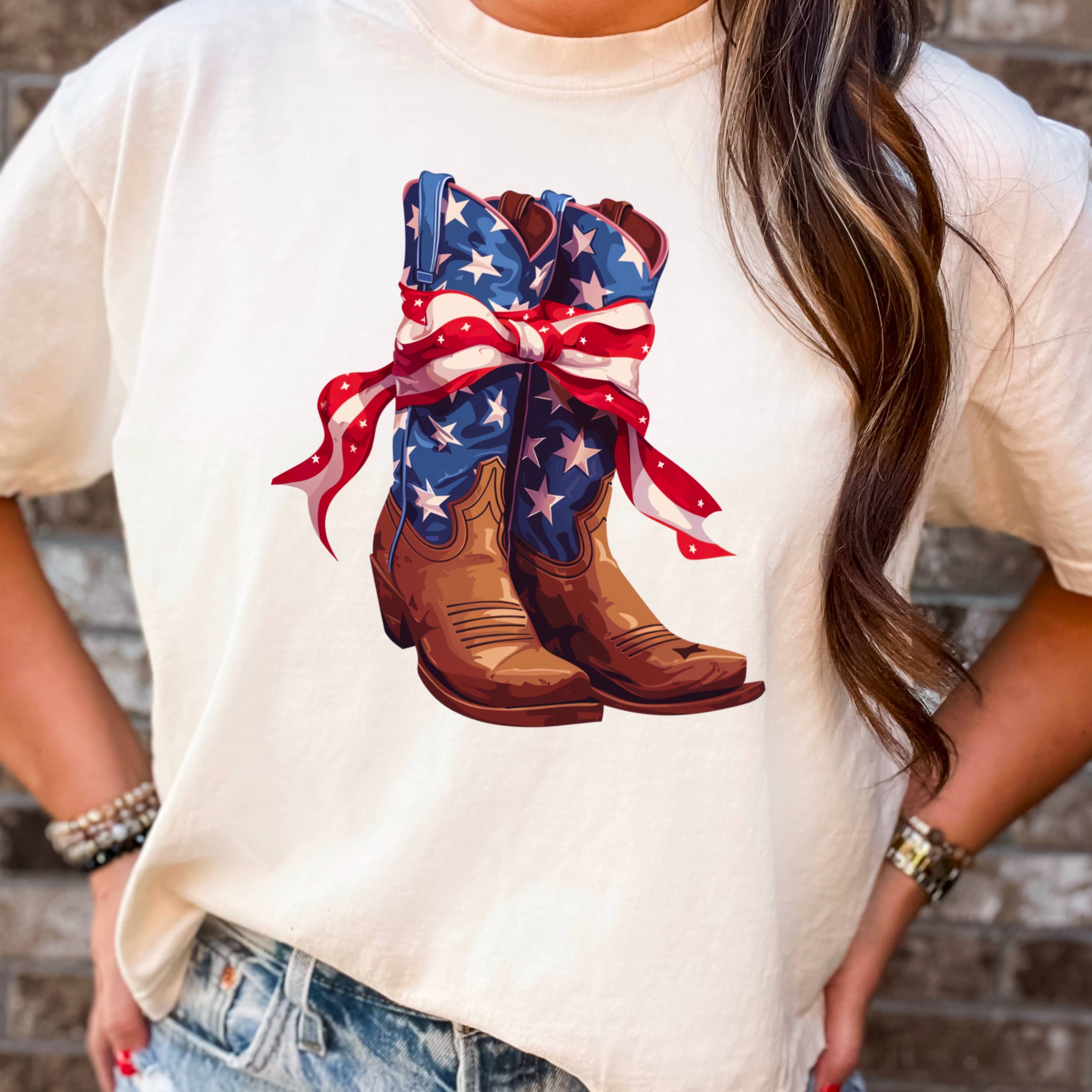 This shirt would be a huge hit at the 4th of July BBQ! DTG on a Bleached Heather Red *Due to inventory shortages, shirts will either be Bella Canvas, Next Level, or Cotton Heritage* Shirts are a unisex fit. Pairs perfectly with our Patriotic Dangles!