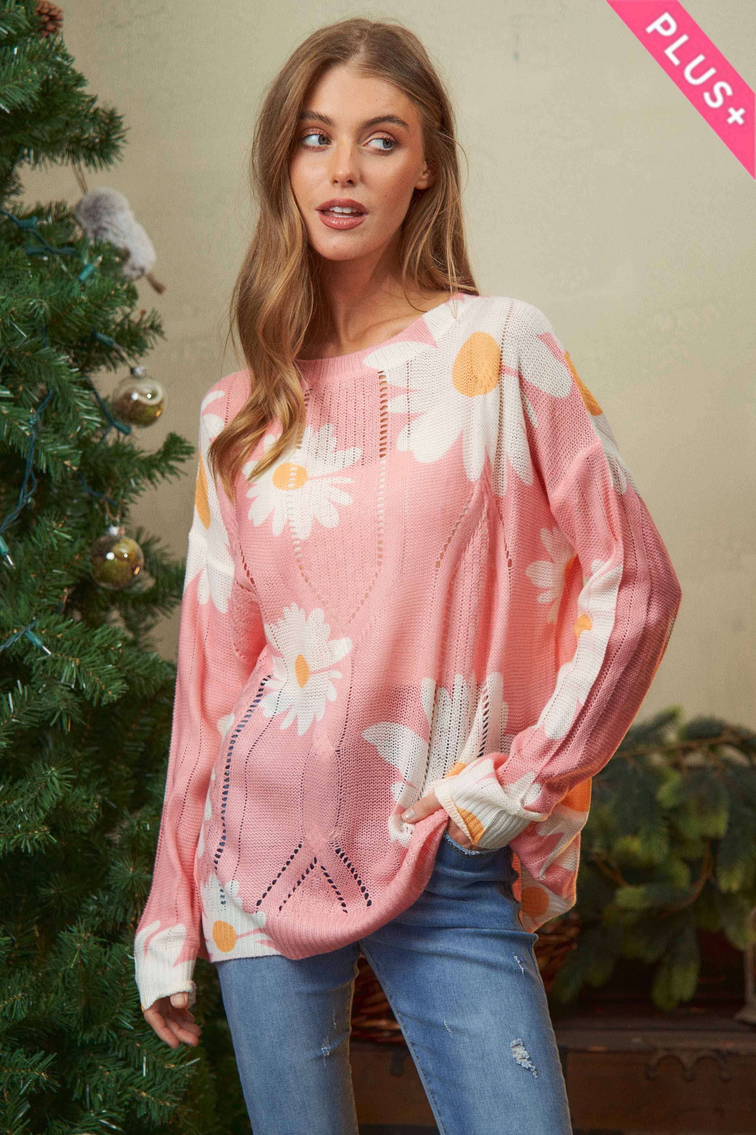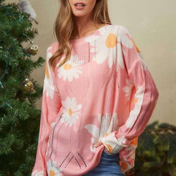 - Ribbed crew neckline floral jacquard knit - Casual drop shoulder - Long-sleeve ribbed hem - Pullover style construction - Beautiful Botanical print - Contrast Ribbed neck, cuffs, and hem - Soft touch - Fits true to size with a relaxed fit through the body. - Keep up with the latest fashion trends and impress everyone with your unique style. * Styled with VP83031 * Model is 5'8, 32-27-37, wearing SMALL