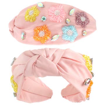 Brianna Cannon - Wholesale Fashion Headband - Women's - Adult Size Pink Tweed Headband with Flowers