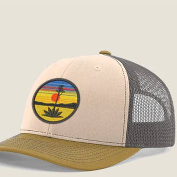 Electric Rainbow Trucker Hat in Tan