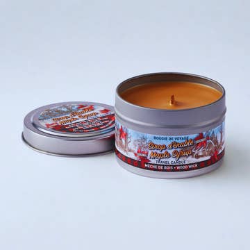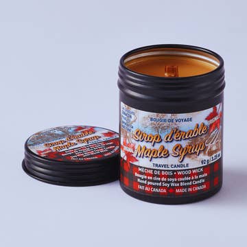 Bring the cozy charm of a Canadian sugar shack to any small space with this Mini Maple Syrup Scented Candle, hand-poured into a miniature version of the iconic maple syrup can. Perfect for gifting or sampling, this mini candle offers the same rich, nostalgic scent of caramelized maple sugar and vanilla - in a more compact size. A little candle that brings big Canadian vibes, wherever you are! Crafted with a premium soy-blend wax in Cotton wick. • Clean, long-lasting burn. • Burn Time: 10 Hours • Size: 70 ml (approx. 2.5 oz) • Fragrance: Sweet Maple Syrup • Vessel: Iconic Maple syrup can- Canadian Design • Hand-poured in Canada Perfect for gift shops, souvenir boutiques, general stores, and Canadian-themed displays. A customer favorite for tourists, holiday gifting, and cozy home décor. People also consider: maple syrup candle, Canada souvenir, sugar shack scent, Québec maple gift, made in Canada, cabin décor, fall & winter candle, Canadian nostalgia.