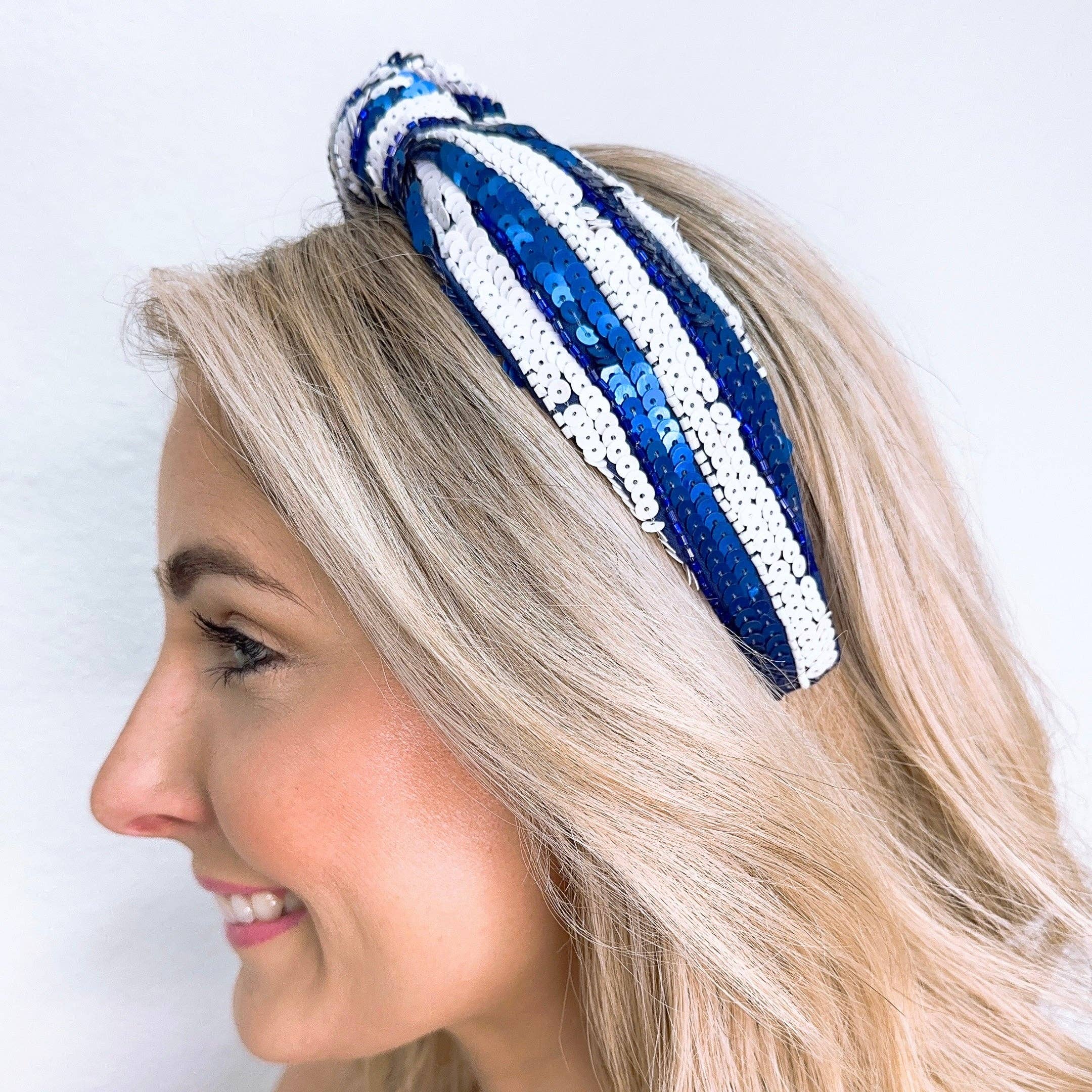 Game Day- Blue Sequin Football Headbands -Game Day Headban