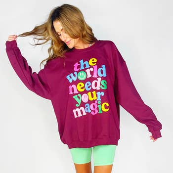 Embroidered Christmas Sweatshirt Holiday Crewneck Sweater with a cute bow and the text " believe in the magic" SIZE Please refer to the size chart located in one of the listing photos. Note, these are unisex sweatshirts so they have a looser, comfy- fit and runs true to size. MERRY Christmas sweater, coquette christmas pink holiday crewneck, embroidred merry Christmas sweatshirt for women christmas sweatshirt varsity holiday sweater xmas sweatshirt gift holiday shirt gift christmas shirt gift winter sweatshirt sweatshirt gift sweatshirt for women christmas sweater holiday apparel