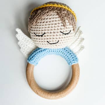This knit rattle is beautifully crafted with intricately adorable details. This handmade rattle is perfect for the little ones! These make great baby shower gifts or as decor in nurseries or just around the house. Lastly, these make a great keepsake for memories. We work with women artisans in Kyrgyzstan to handcraft products using natural fibers and eco-friendly resources. Approximately 4-5 inches in length.