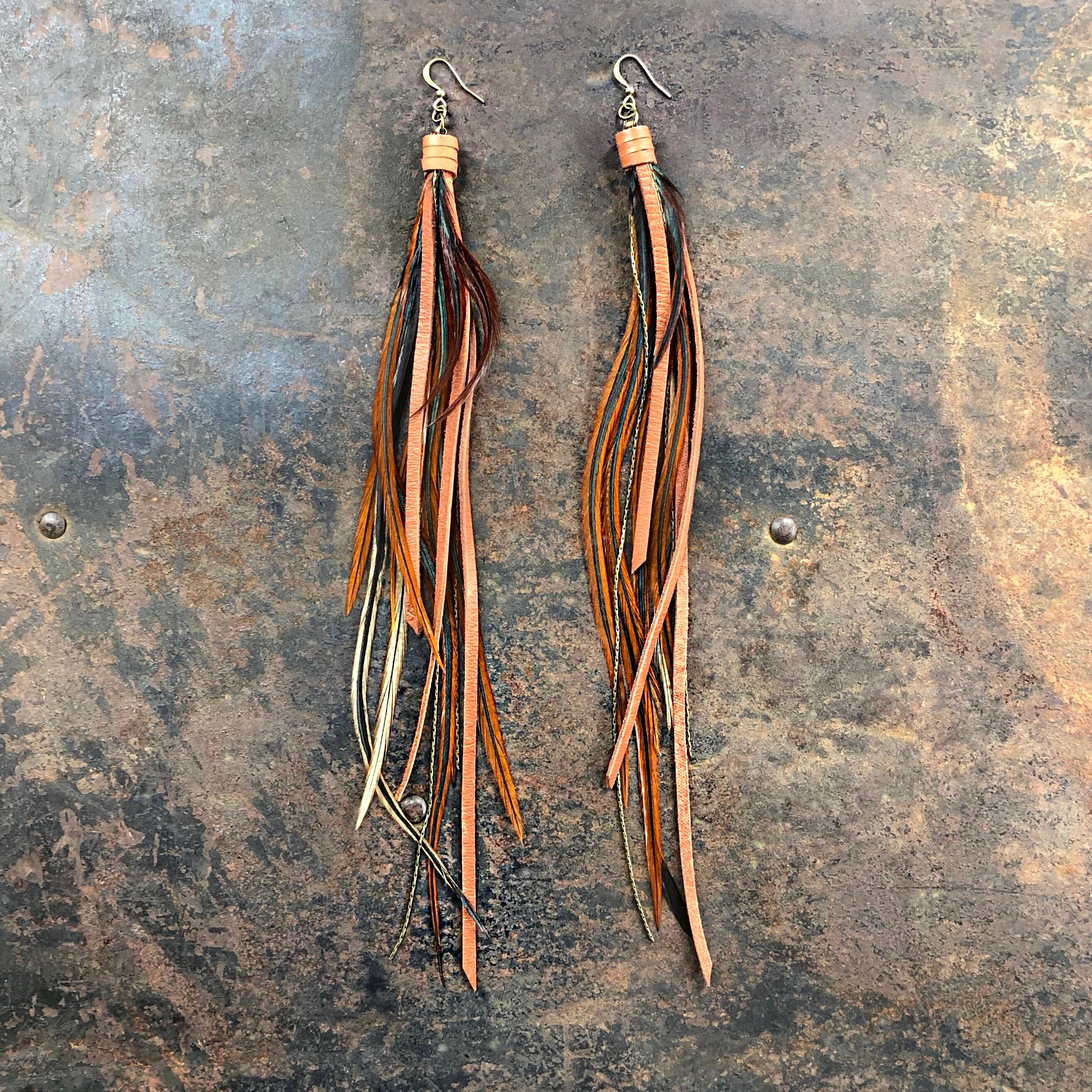 Pirate Feather Earrings - Fawn & Rust, Boho Western Style