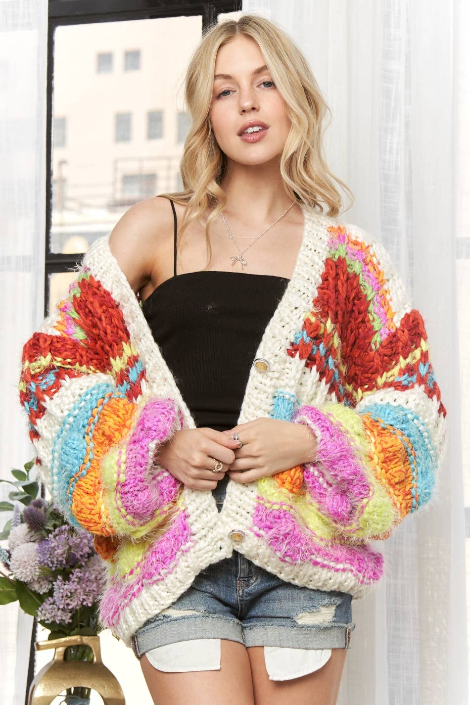 Crochet Multicolored Square Kimono