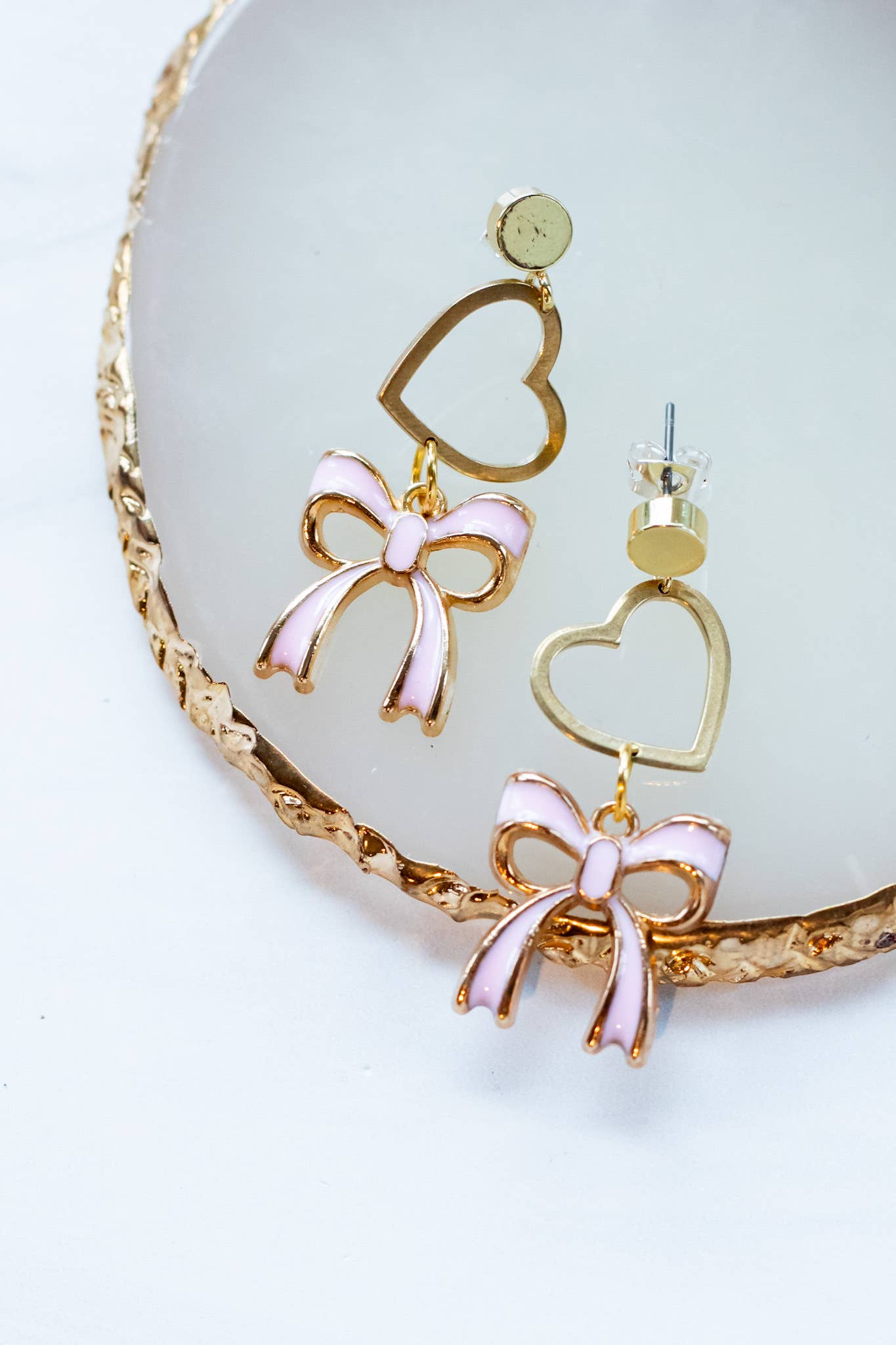 * Hypoallergenic stainless steel posts & nickel free * 1.96" overall size * Lightweight and durable acrylic MSRP $22 These charming earrings feature a delightful bow design, crafted from high quality mirror acrylic. Each earring showcases a beautifully detailed bow shape, complete with a stylish, elongated tail that adds a playful touch. The vivid finish is enhanced by a mirror surface that catches the light, creating an eye-catching effect. Hoops provide a contrasting element, adding elegance and making these earrings suitable for both casual and dressy occasions. Perfect for adding a pop of color to any outfit, these earrings are a fun accessory that can brighten up your look. Ideal for gifting or personal use, they embody a whimsical yet chic aesthetic. CARE INSTRUCTION: Clean with a microfiber cloth to remove dust. Avoid contact with perfumes and lotions to prevent discoloration. Put on earrings after getting ready. Store them in a jewelry stand or box when not in use