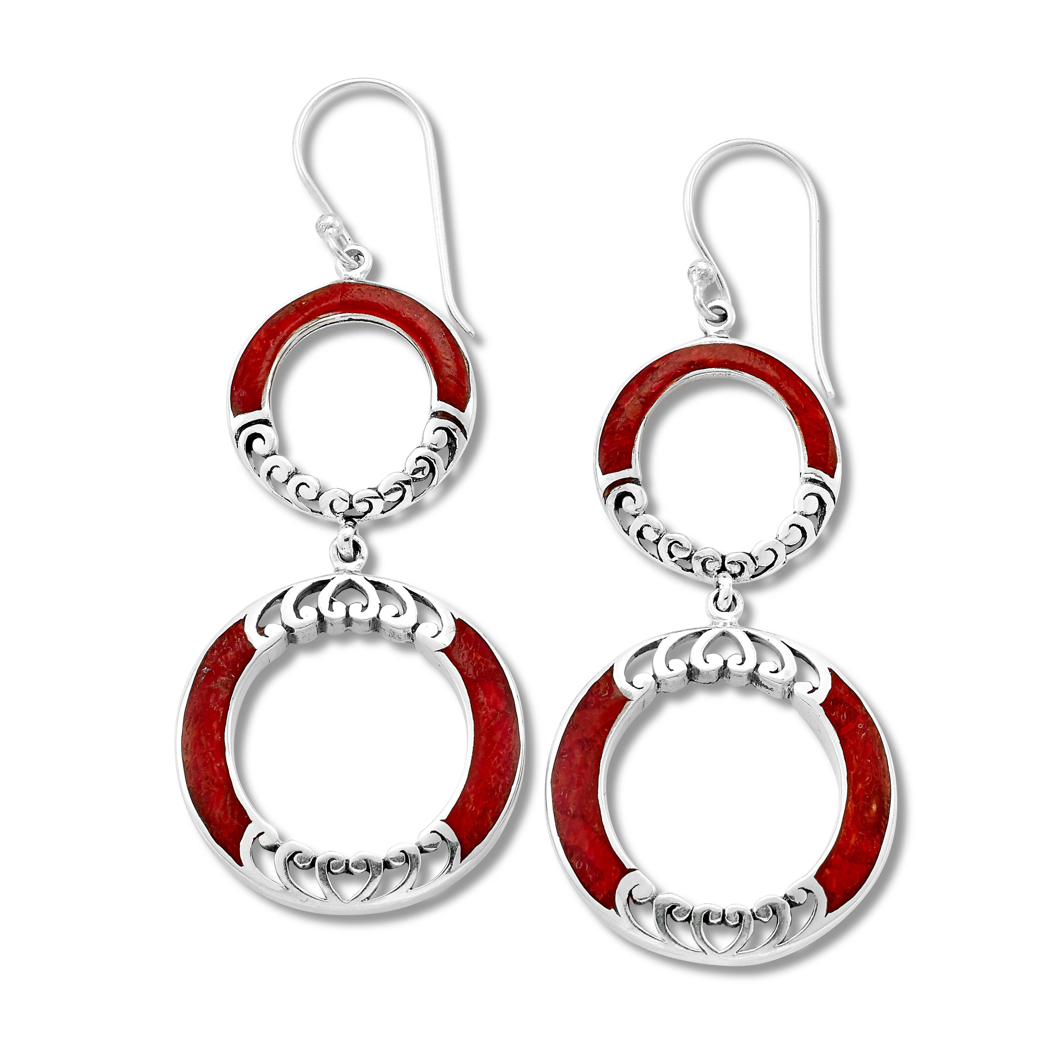 S44C-E - Red/Black/Silver Wire Earring