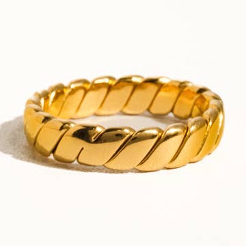 Snash Jewelry nameplate rings are available in sizes 5-9. Brass rings are uncoated, allowing for customer re-polishing. Avoiding water, heavy lotions, chlorine, etc., will prolong the original polished shine. Cleaning the ring with a jewelry polishing cloth will restore shine if tarnish occurs.