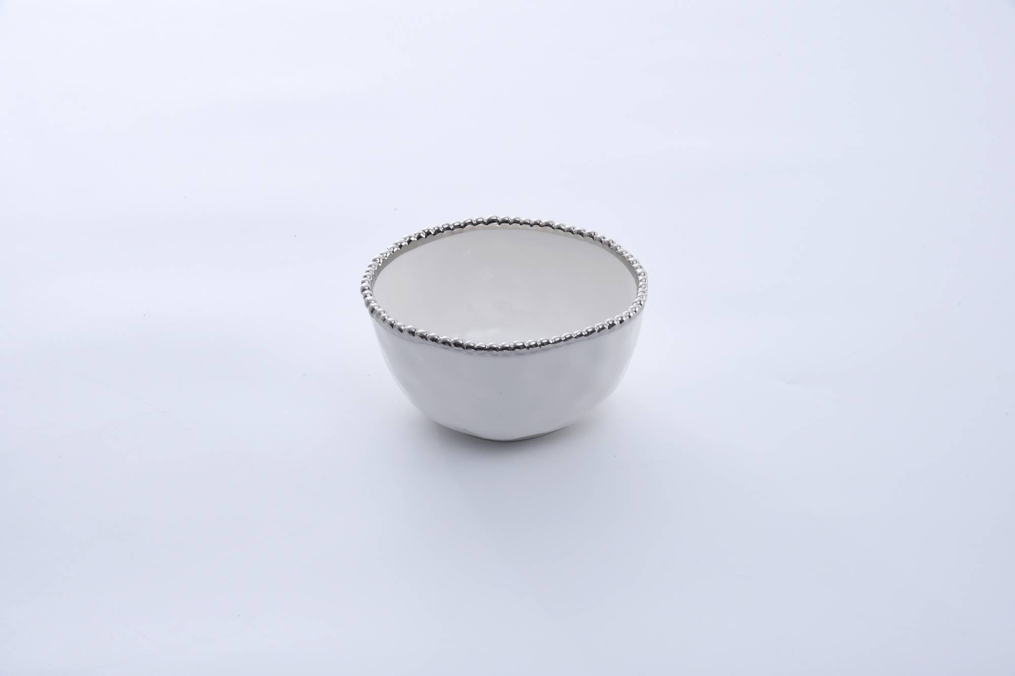 CER9006W Set the Table with our Salerno Collection Mug. This mug is beautifully crafted in a stunning white porcelain with a silver titanium beaded handle and delicate silver rim will pair perfectly with any dining set. Great for fancy dinners or everyday meals. Use for a fabulous brunch or delight guest by serving their after-dinner coffee in this gorgeous mug! Dishwasher safe, tarnish free, and stain resistant. 13.5 oz capacity