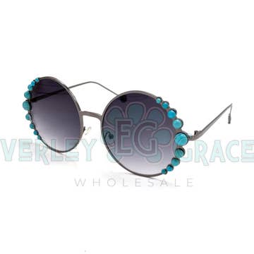 ⭑ SOLD IN PACKS OF 3 DETAILS * Exclusively Designed & Manufactured by Everley Grace * Gold Plated Metal Frame * Cat Eye Lens Shape * Black Tinted Lenses For UV Protection * Faux Turquoise Beads On Frame * Each Bead Is Individually Hand Glued * Includes Microfiber Dust Cloth & Protective Carrying Case MSRP: $64 MOQ: 6 PAIRS