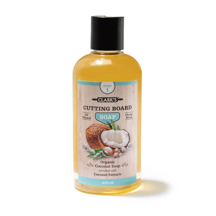 At CLARK’S we recognize our customer’s desire for food-safe, non-toxic, cleaning and conditioning products for their butcher blocks, cutting boards, salad bowls, wood utensils, and countertops. All of the ingredients used in CLARK’S Cutting Board Soap are safe for use on food surfaces as well as around children and pets. Organic Castile Based NO HARMFUL ADDITIVES like most dish soaps. No animal by-products (Vegan) and no artificial thickeners or gels. Delightful Rosemary and Lavender scent