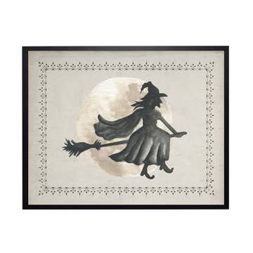 A witch's cat makes off with her broom, in order to sing a song to the moon... Deets: 8x10" art print (sized for a standard frame) Printed digitally on substantial matte card stock Reproduced from an original paper cutout illustration