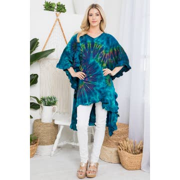 Our Kumari Tops are made with 100% Cupro material, which is a luxurious, sustainable fabric that is produced from repurposed cotton waste in a closed loop system. This elegant caftan top has the look and feel of silk, but the lightness, easy care, and breathability of cotton. These fair trade tunics come in a range of stunning prints and colors, and are a free size style that is designed for a comfortable and elegant fit up to XXL size.