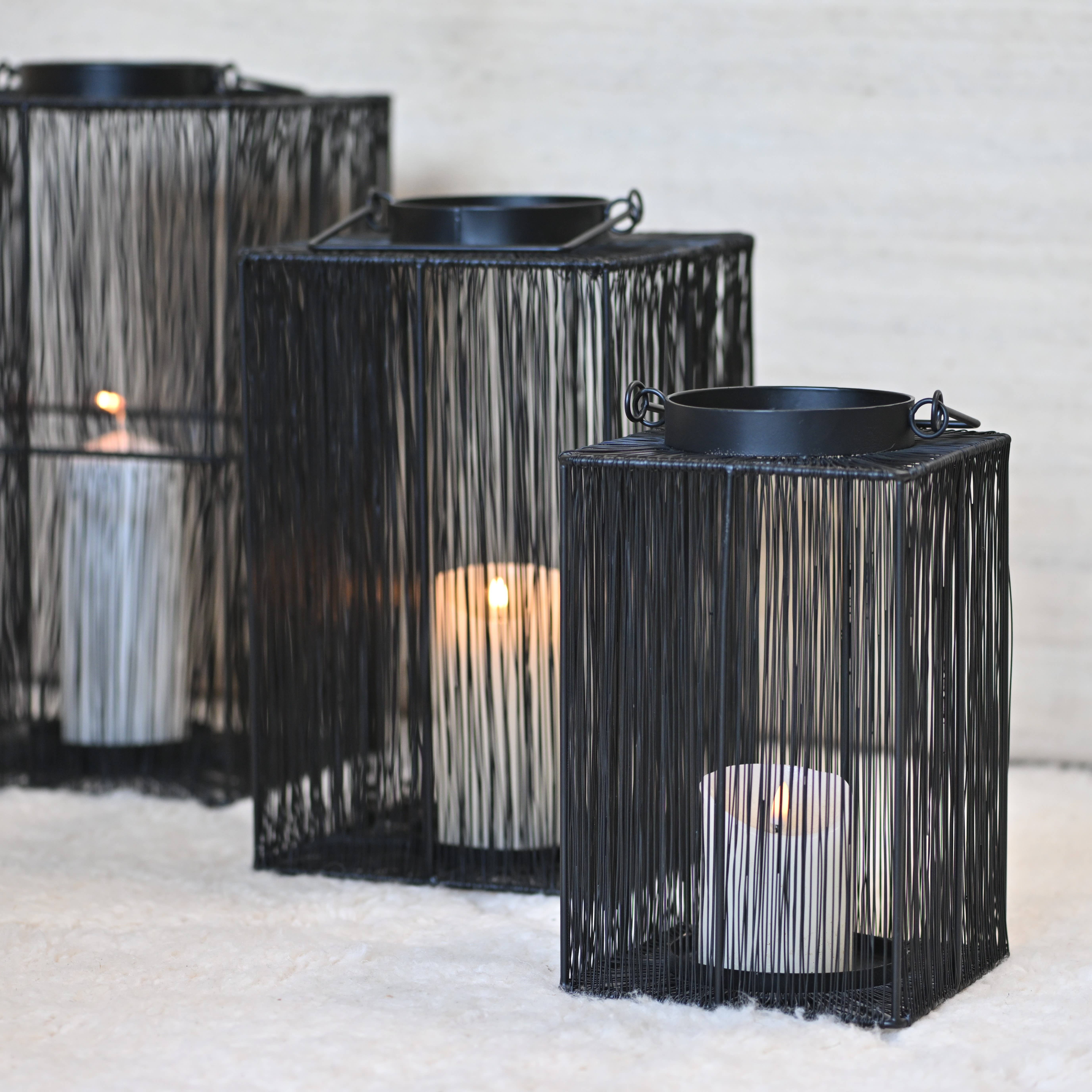 Our lanterns are handcrafted from metal wire. Their simple and elegant style, very refined, will allow them to fit into any type of interior. Supplied without candle or glass tube (we recommend using LED candles for use Dimensions: 26 x 26 x H 43 cm Can be used outdoors but must be protected from moisture and weather