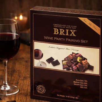 Red Wine, White Wine & Champagne – 3 Tin Small Round Pairing Collection Let gourmet chocolate enhance the experience with any type of wine! Features 31% white chocolate to pair with Champagne, 38% milk chocolate to pair with white wines and 61% dark chocolate to pair with red wines. 3 1oz tins.