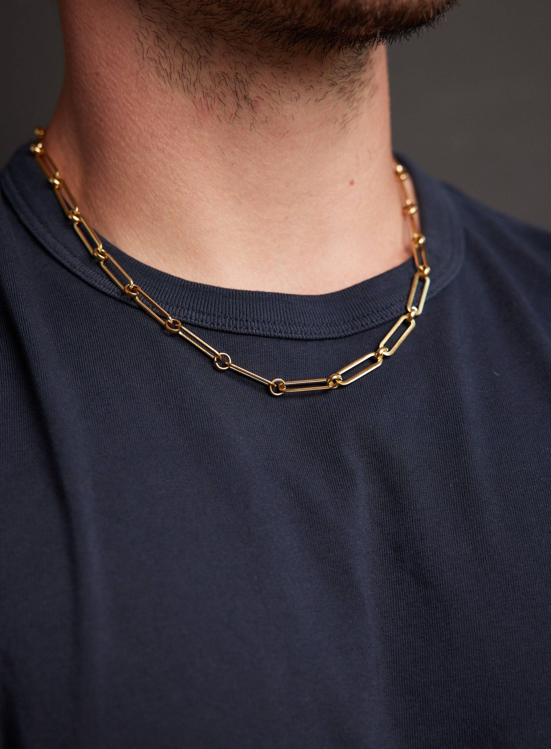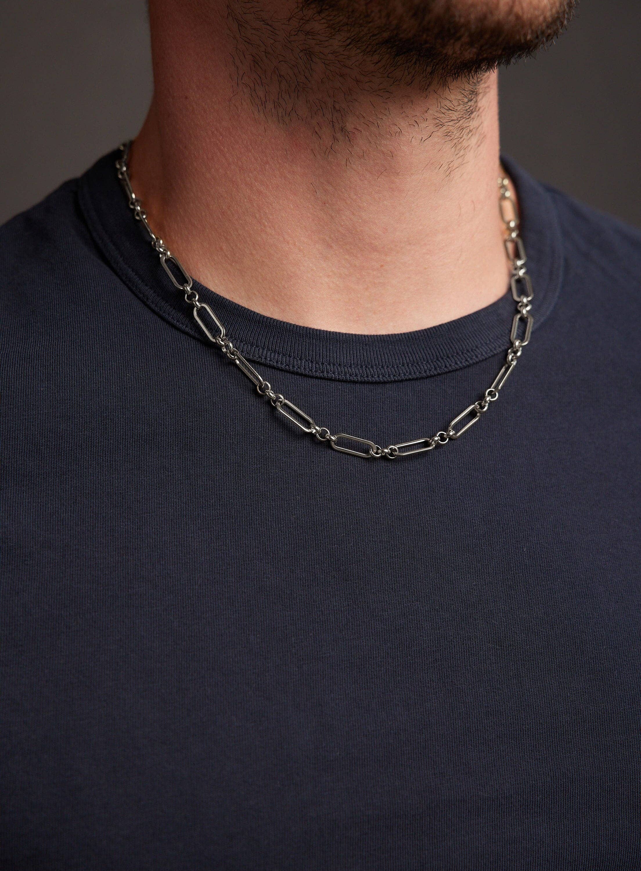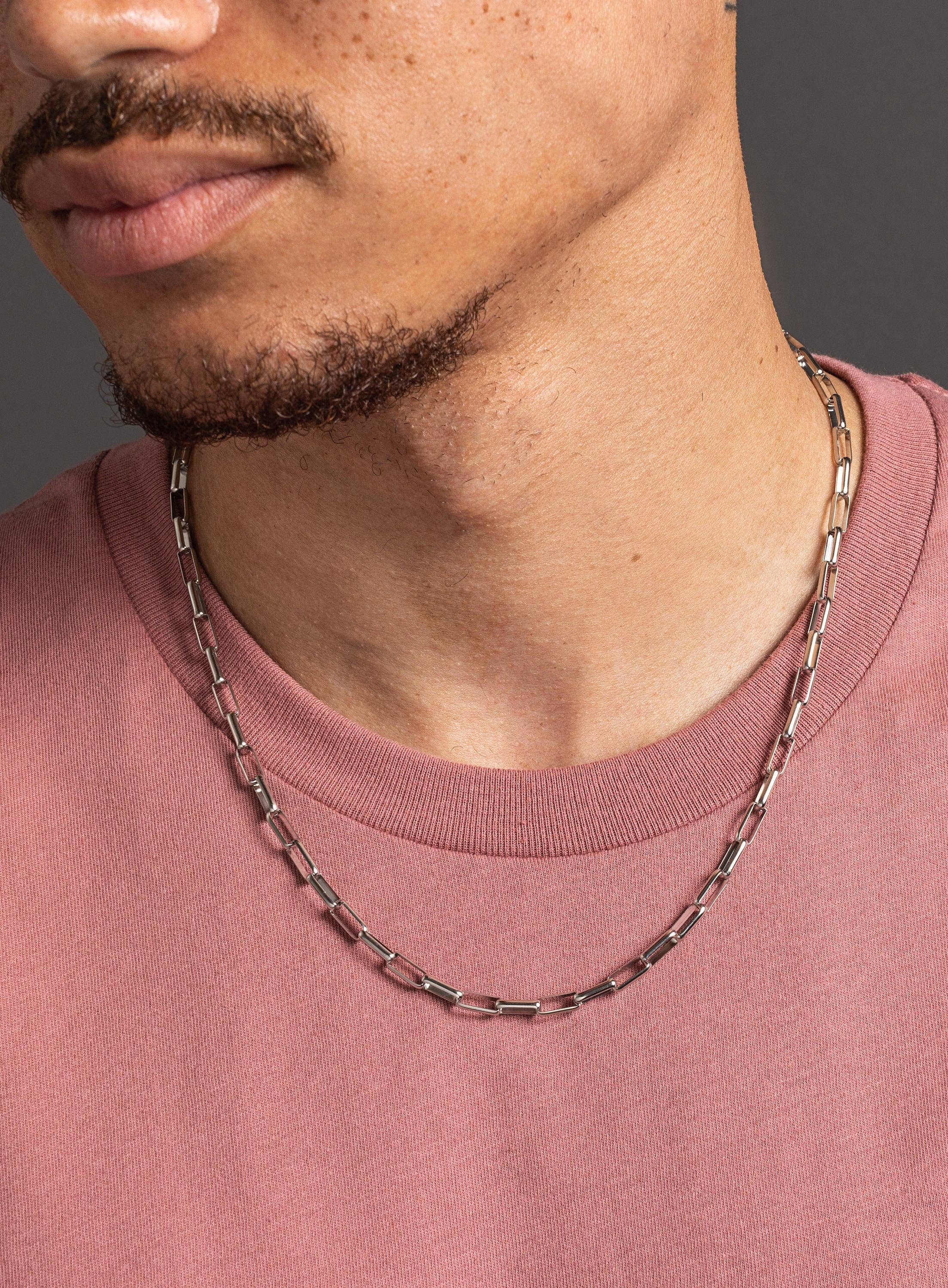 Waterproof Sweatproof Men's Silver Chain Necklace - CHUNKY and thick rope style chain necklace for men - Statement jewelry for guys, man Chain Width: 10mm Clasp: Lobster Claw Chain: Waterproof 316L Stainless Steel Length: Available in 16, 18. 20, 22, and 24. Model is wearing 20 inch chain. Note that depending on your height, build, shoulders and neck chain will fit you different. Please measure your ideal length before ordering.
