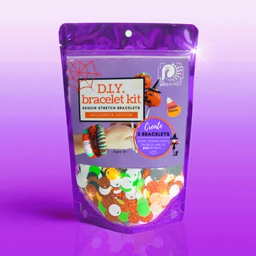 Pix Perfect™ assembles 100% of our holiday bracelet-making kits in Las Vegas, NV. We are proud to be a woman-owned business; kitted with love in the USA. Each kit contains the materials to create 3 eye-catching bracelets featuring our unique Pix Perfect™ sequins. This kit is the perfect craft for girls 8+, but stylish enough for teens and adult women. Simply string the sequins onto the elastic cord and keep adding until you have achieved the desired length. Note: Each kit includes our special holographic/iridescent sequins; reserve the beads for spacing between the holographic sequins to really show off their sparkle. Great for gift-giving! Kit contains: • Pre-Cut Elastic Cord for 3 Bracelets • Halloween colored Sequins for 3 Bracelets • Spacer Beads for 1 Bracelet